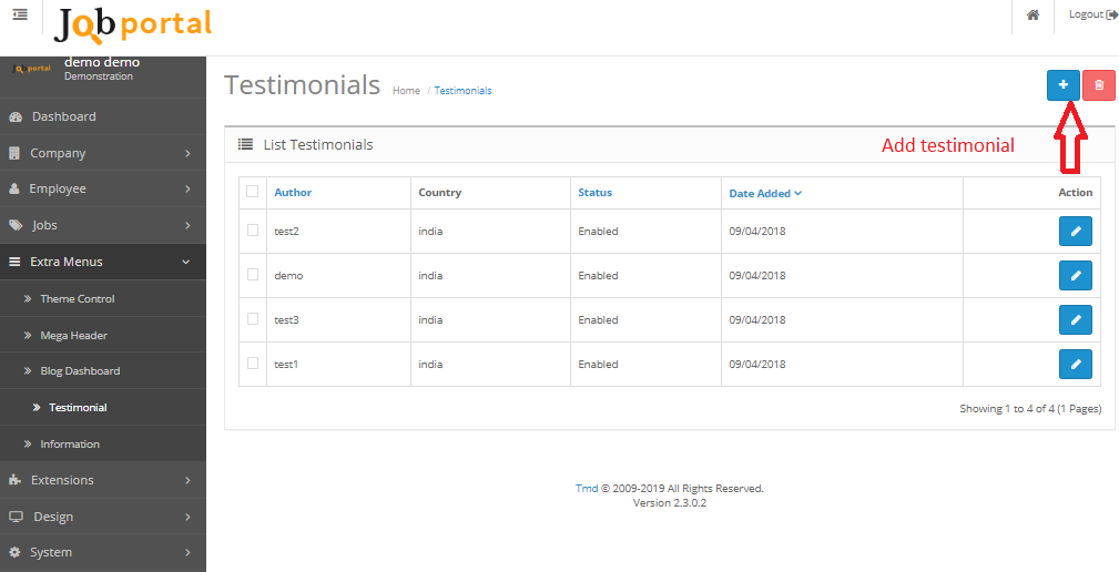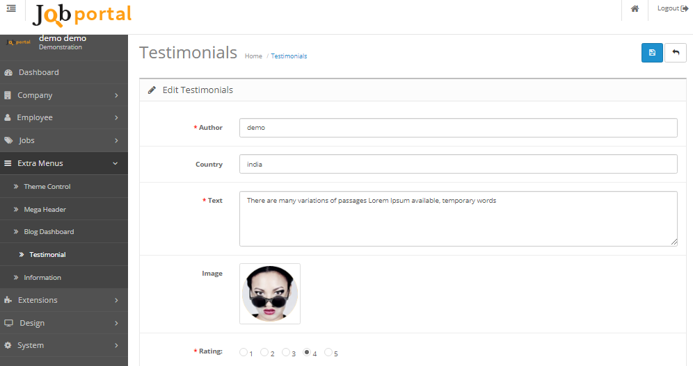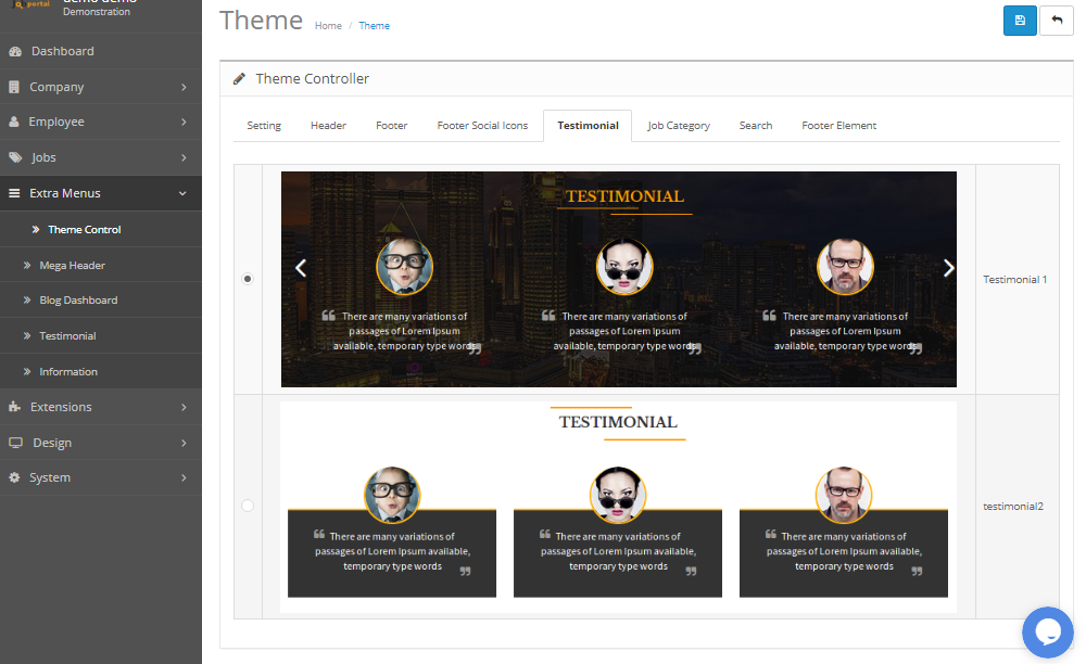 - jobportal Script allow 2 type Testimonial Layout For display different in front.