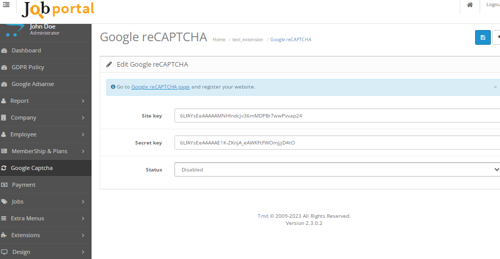 Jobportal script allow this feature you can put your googel capcha key and avoid spam and abuse on your site