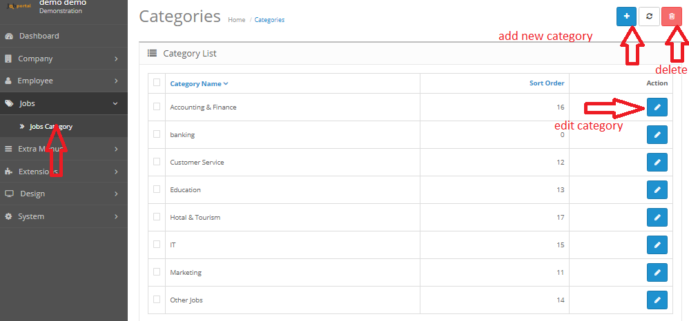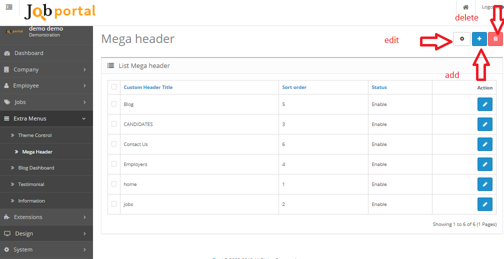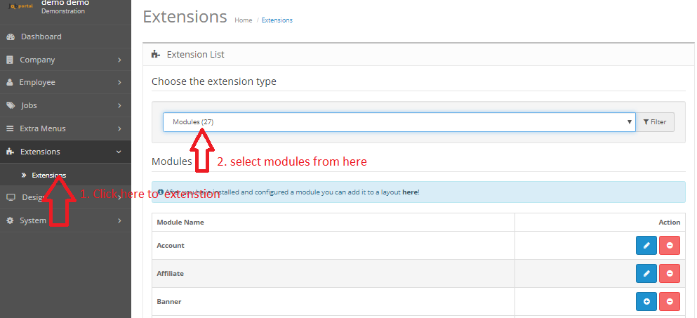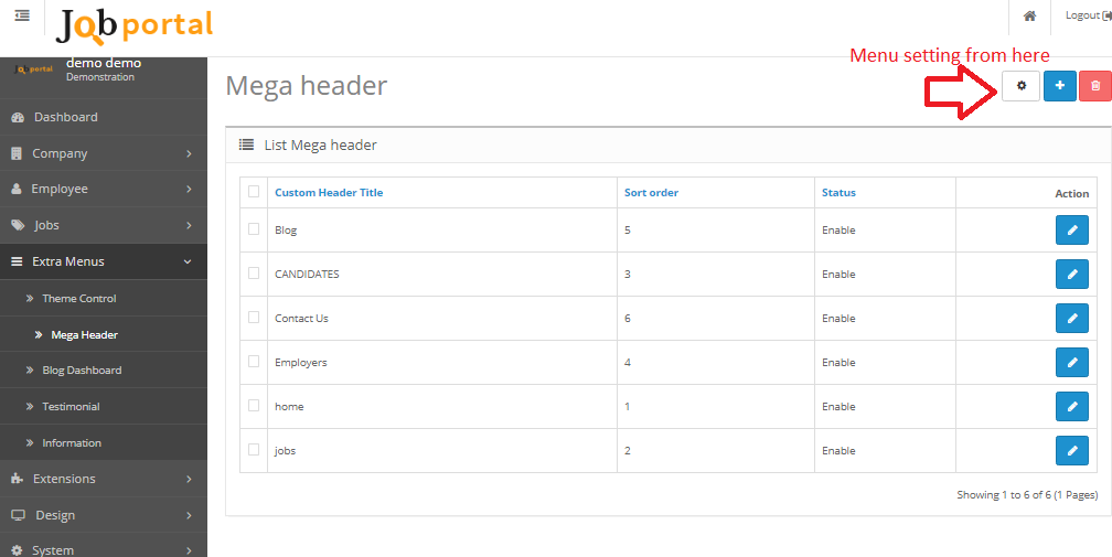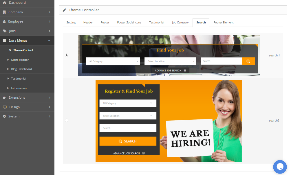 Extensions Is use for manage module which parts of jobportal script Home page layout or elements.