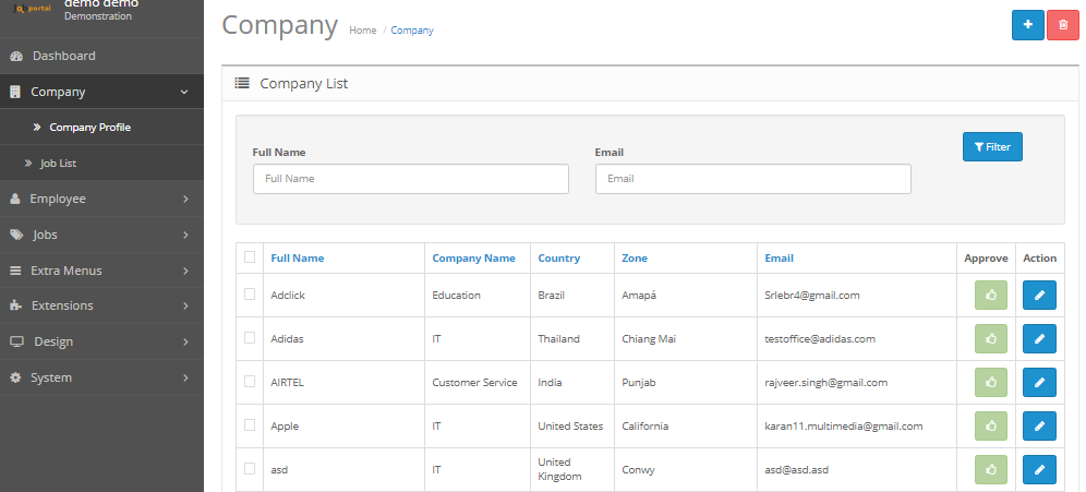 Admin can approve job and manage the job and company'S list