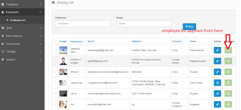 Admin can Manage all Employee(jobseeker) which is signup from frontend site.