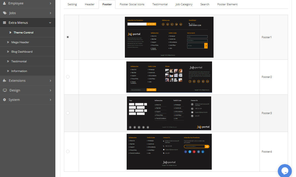 - jobportal Script Use 4 Layout Of Footer which you can choose according to your choice