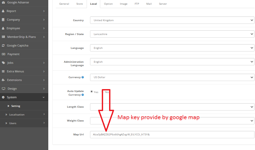 Here you can put your google key for add map in your address when you signup on website as a jobseeker or employer