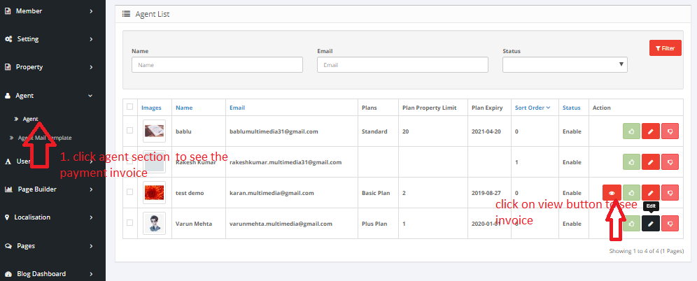 Admin can check payment invoice on Employer or jobseeker list in admin area after payment done by Employer or jobseeker, see screenshort