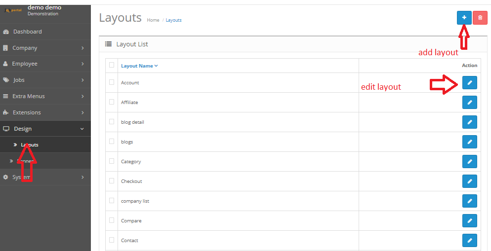 Layout is a feature where admin can add layout of any pages like leftbar, rightbar etc..