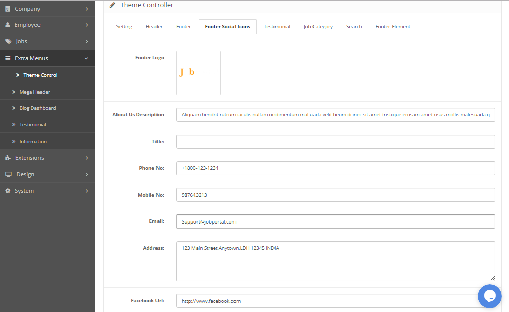 - jobportal Script Use Footer Social Icons For display Social icon in footer also social mendia page link update here , and contact information also update here