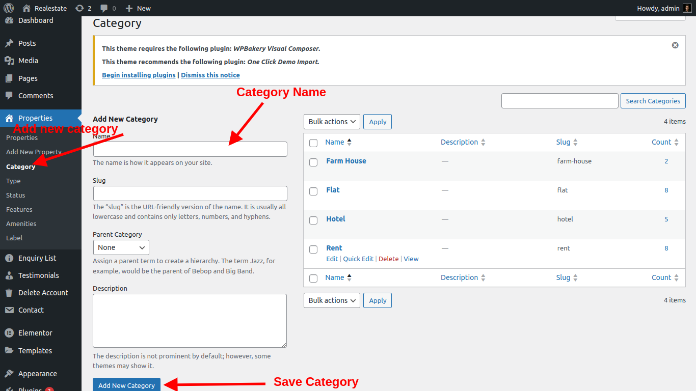 Realestate script make category in easy way for user and admin also admin can add category from admin panel see screenshort below:.