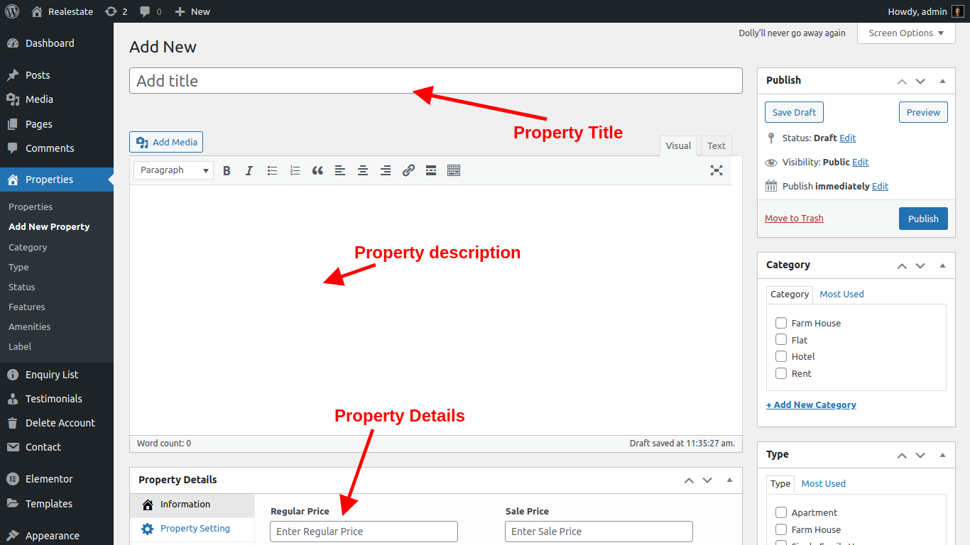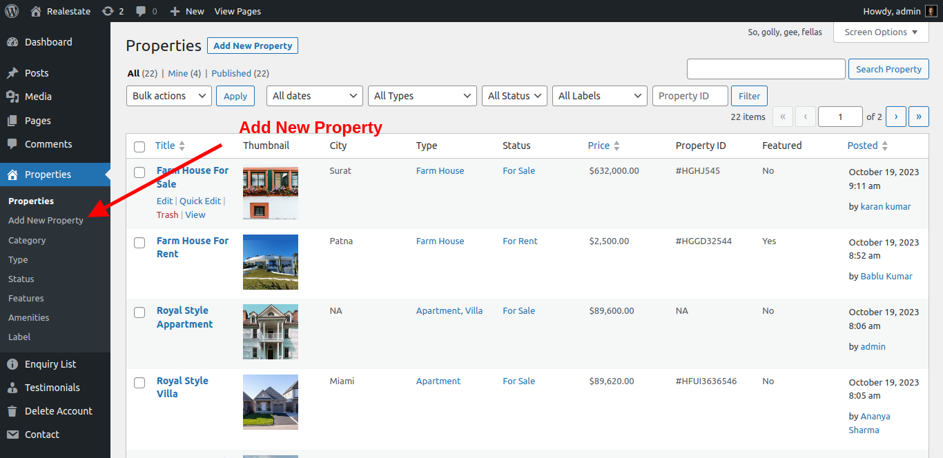 Property->Add New Property