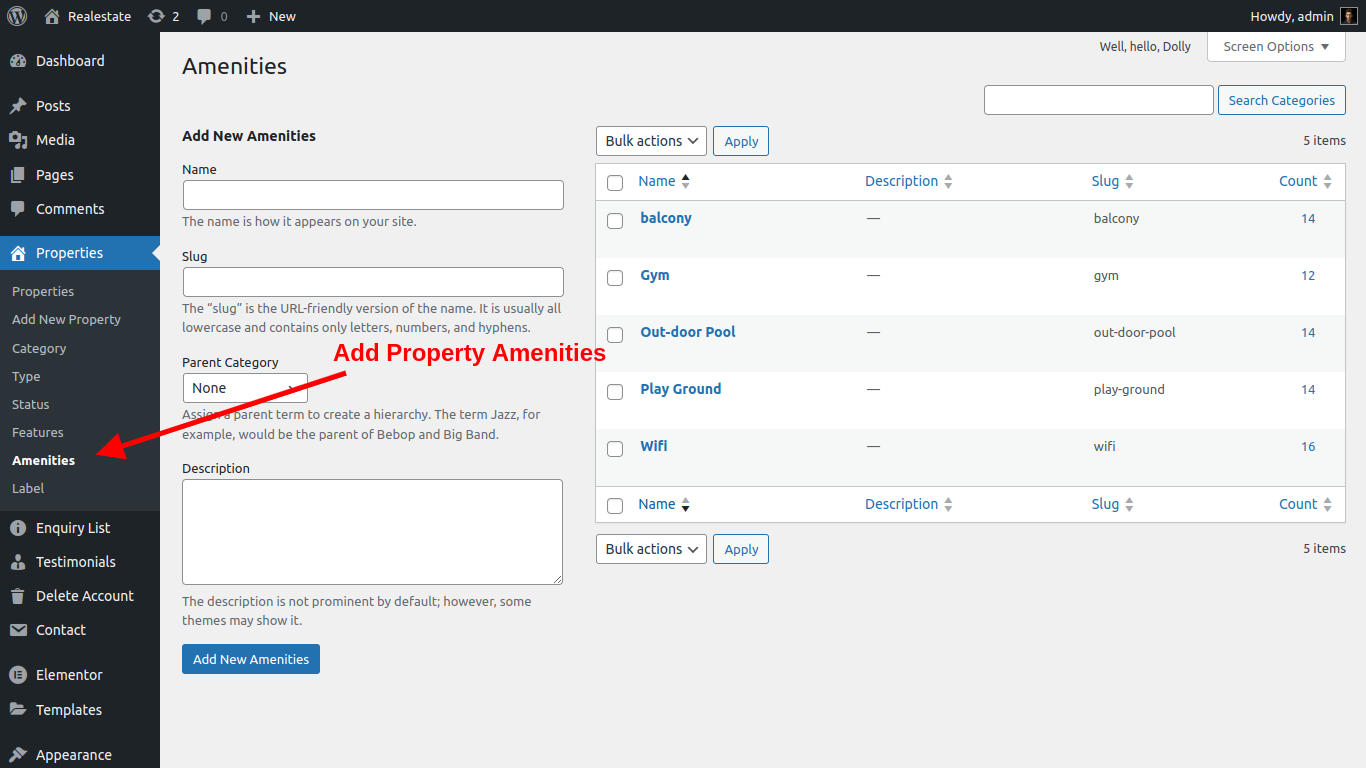 Property Amenities is also as like a features here admin can add another lots features related to property like: Wifi , internet , gym, etc... admin can easliy add and manage amenites from admin panel. See screenshort below.