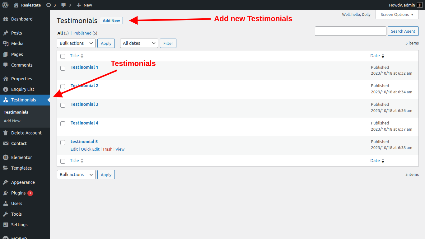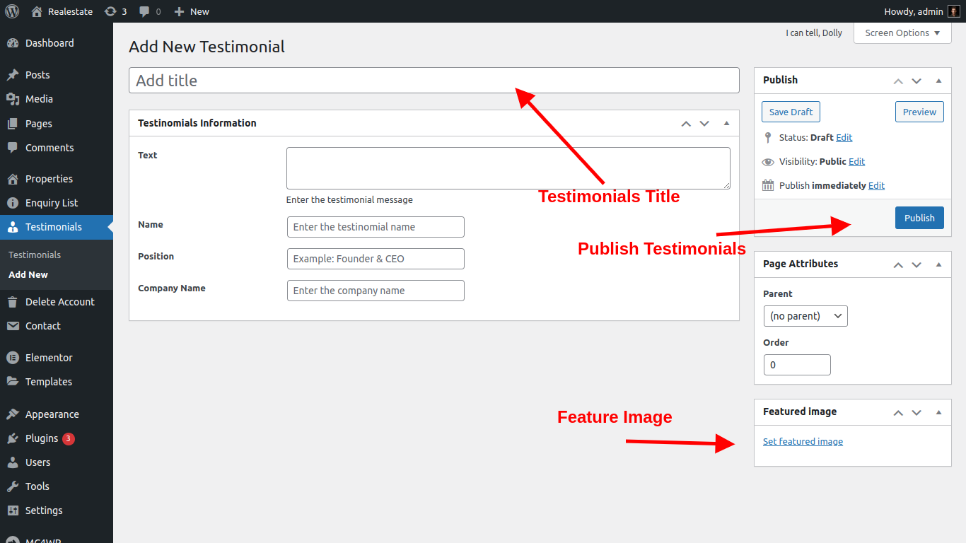 Testimonial is a feature on real-estate theme which is showcases the quality and success of a site’s products or services. Testimonials often come directly from customers and serve as a successful marketing method. admin can add testimonial and display on home page and separate page also.