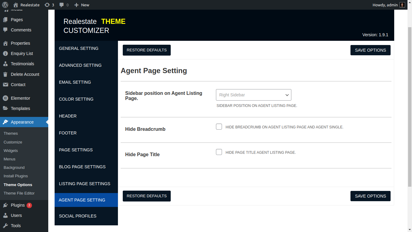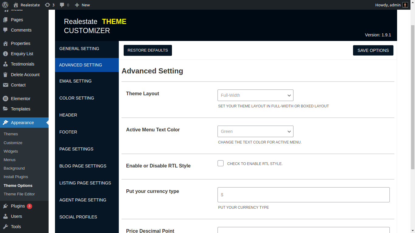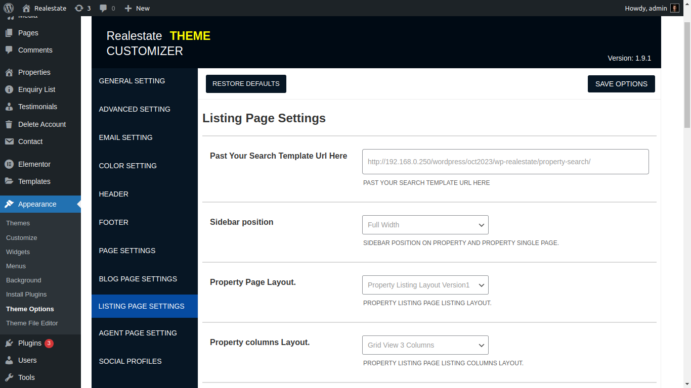 Here you can manage property Listing layout, property search page, property element and related of realestate all property etc....