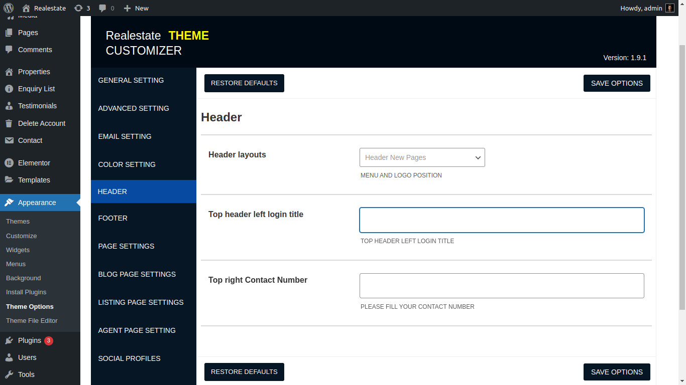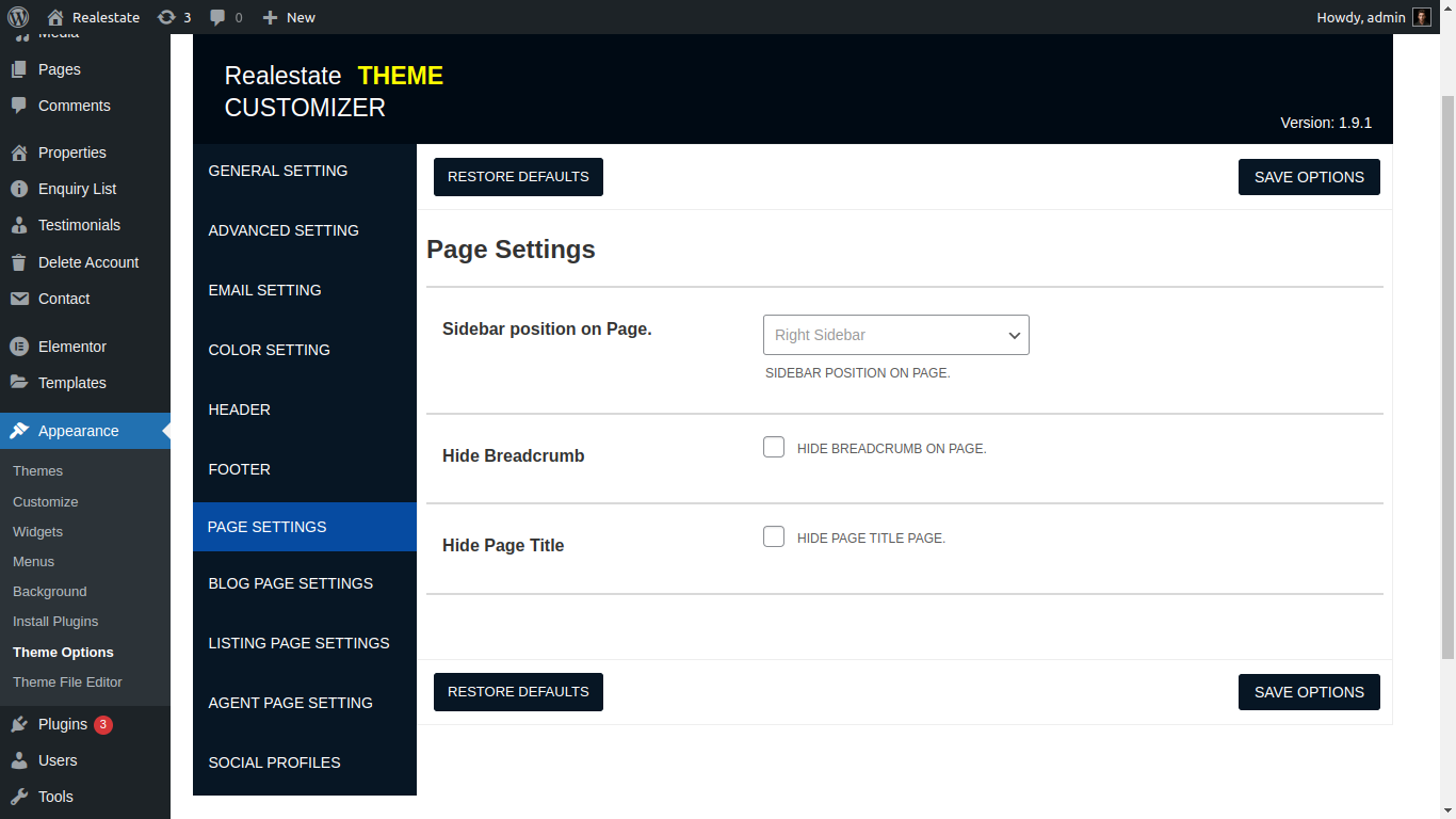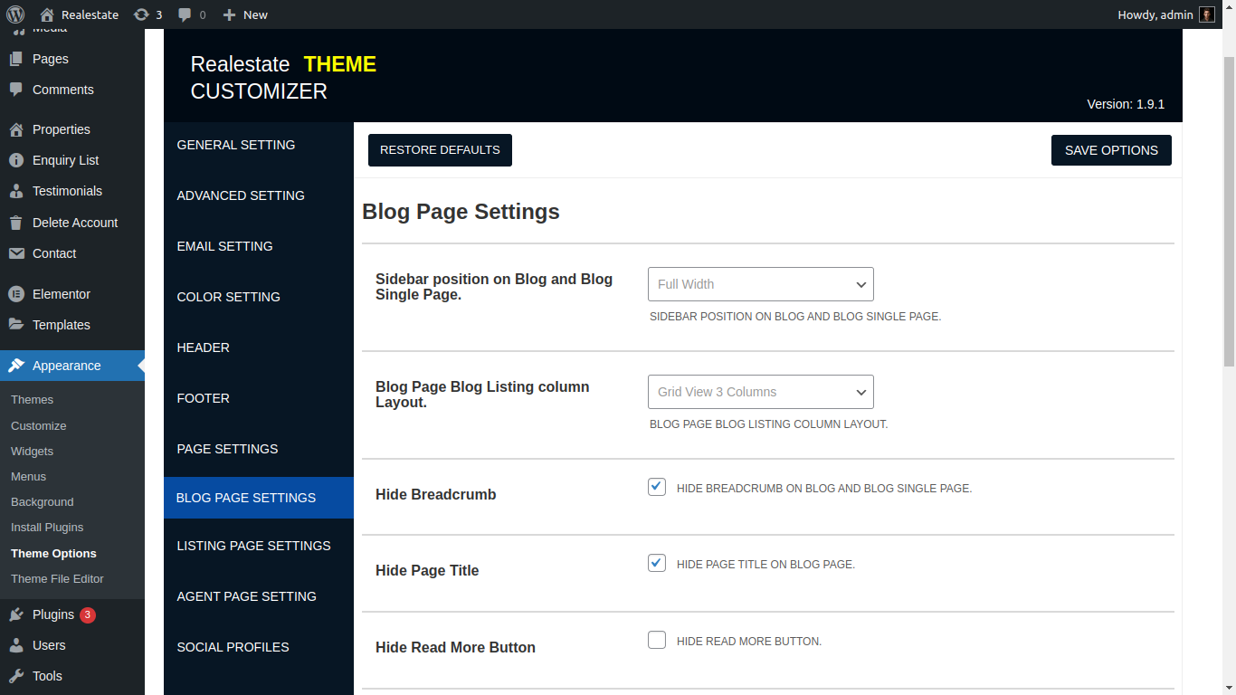 Here you can manage property Listing layout, property search page, property element and related of realestate all property etc....