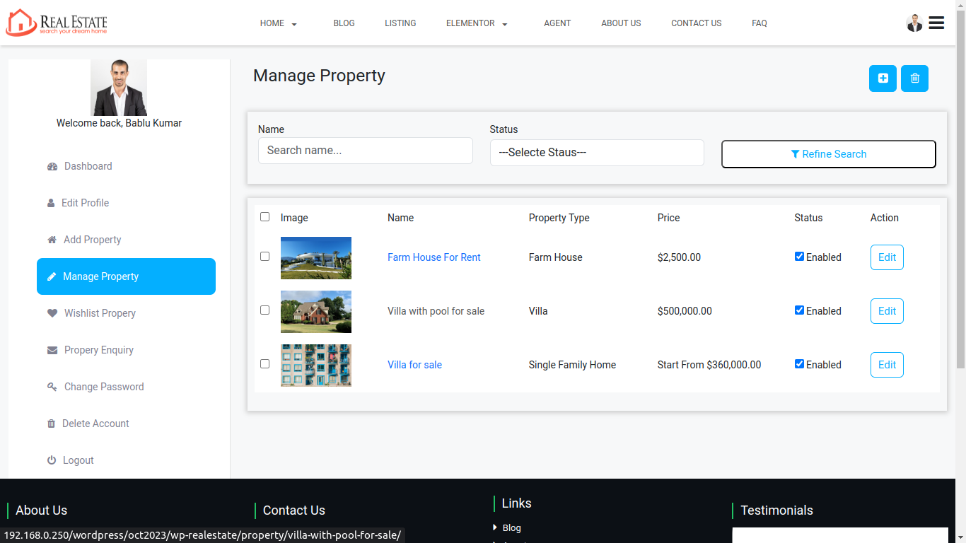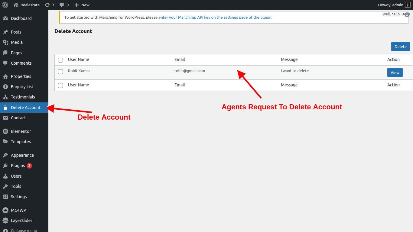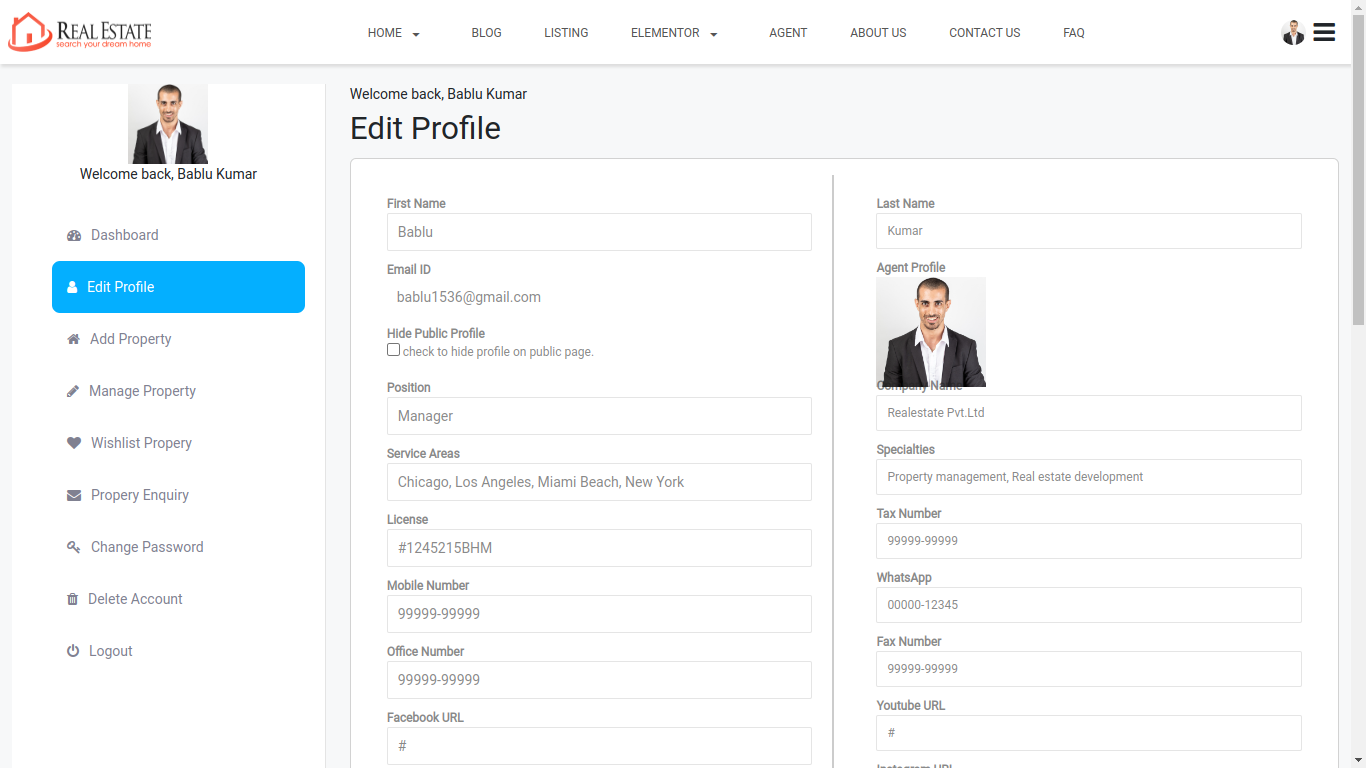 Enquiry list is display all enquiry of your property listing which is coming from customer and agents also view the enquiry notification on agent dashboard. admin can manage all enquiry listing from admin panel